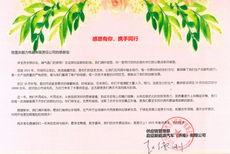 • 來自啟征新能源汽車(濟南)有限公司的感謝信